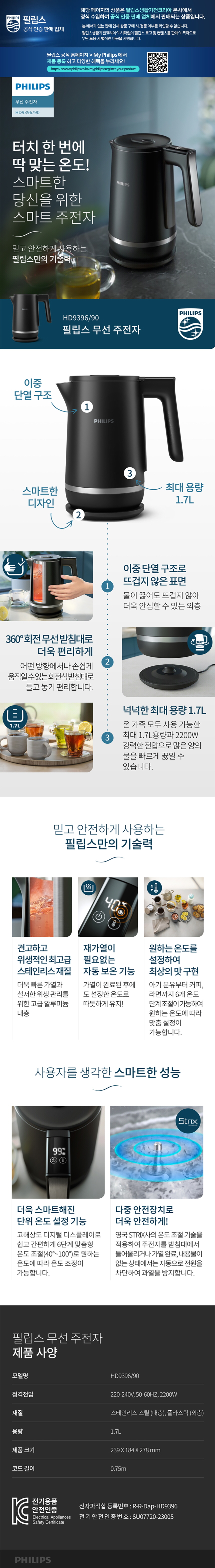 »óǰ¸í [Çʸ³½º] 9000 ½Ã¸®Áî ¹«¼± ÁÖÀüÀÚ (1.7L) HD9396/90 1P