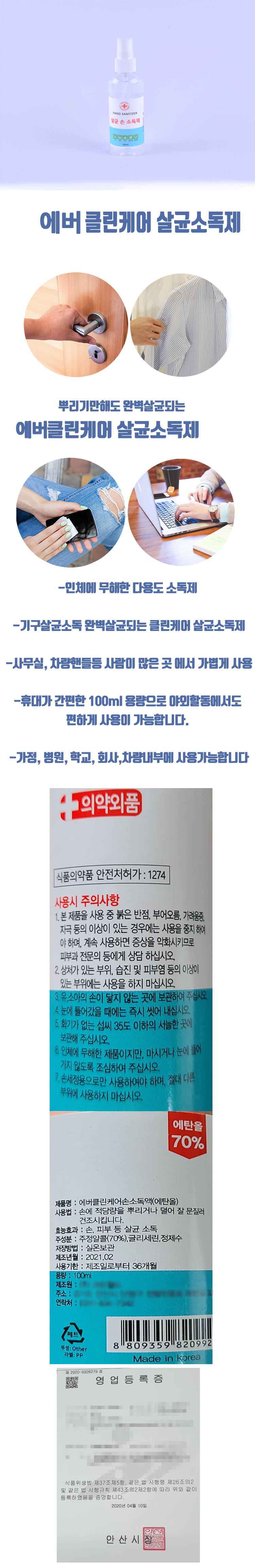 ¿¡¹öÅ©¸°ÄÉ¾î »ì±Õ ¼Õ ¼Òµ¶Á¦ 100ml(½ºÇÁ·¹ÀÌ)