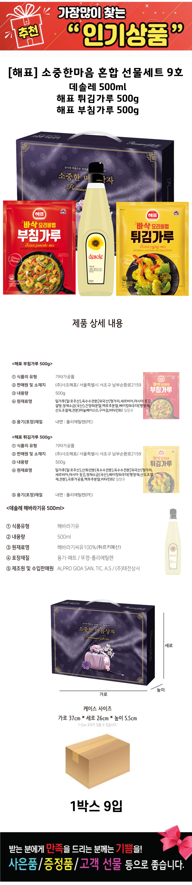 ¿ÀÀÏ ÇØ¹Ù¶ó±âÀ¯ 500m l+ ºÎħ°¡·ç500g + Æ¢±è°¡·ç500g