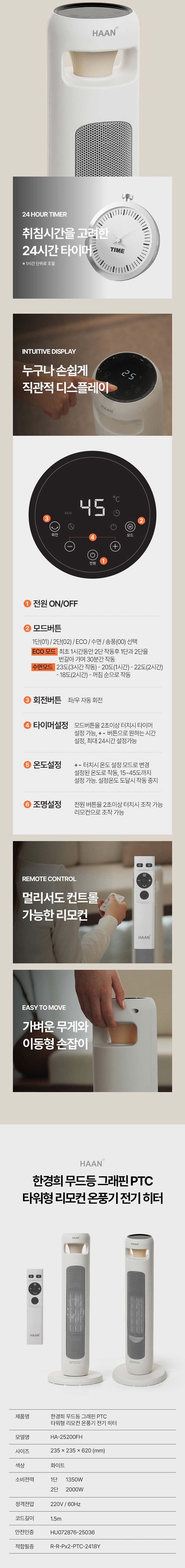 »óǰ¸í [ÇѰæÈñ] ¹«µåµî PTC Ÿ¿öÇü ±×·¡ÇÉ ¿Âdz±â HAAN-25200FH
